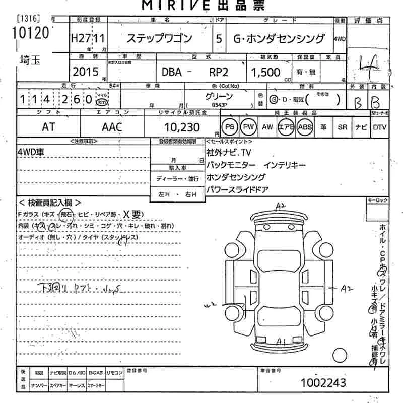 Honda STEP WAGON с аукциона Японии MIRIVE Saitama лот № 10120