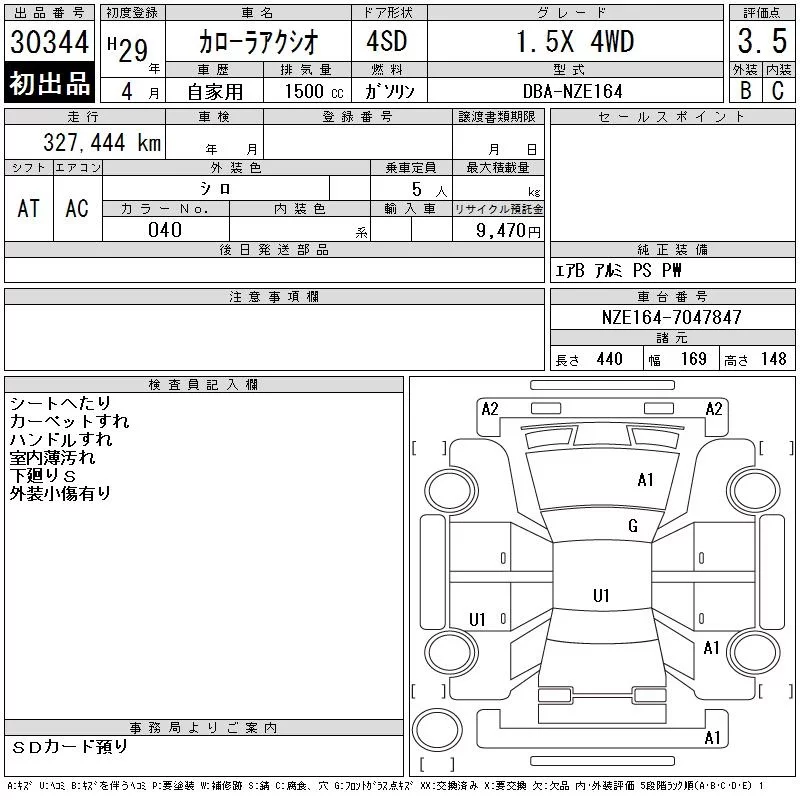 Toyota COROLLA AXIO с аукциона Японии CAA Chubu лот № 30344
