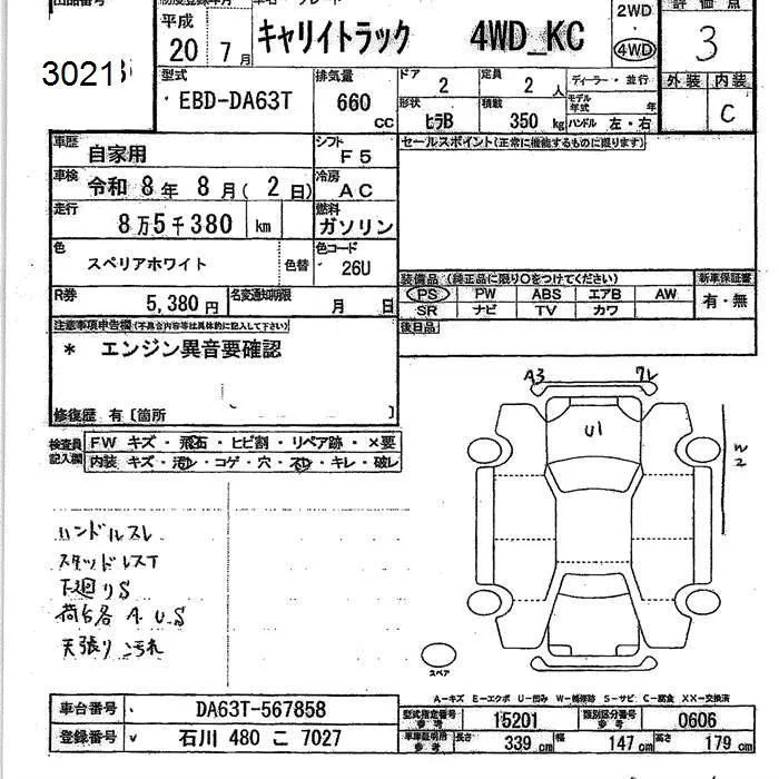 Suzuki CARRY TRUCK с аукциона Японии JU Ishikawa лот № 3021