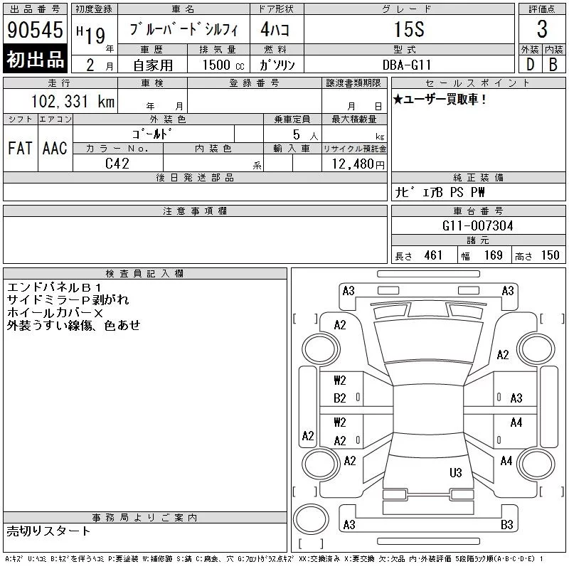 Nissan SYLPHY с аукциона Японии CAA Chubu лот № 90545