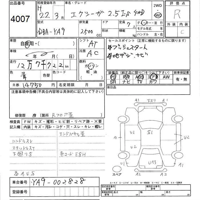 Subaru EXIGA с аукциона Японии JU Ishikawa лот № 4007