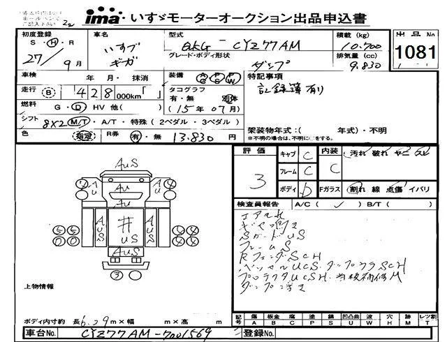 Isuzu TRUCK с аукциона Японии Isuzu Tokyo лот № 1081
