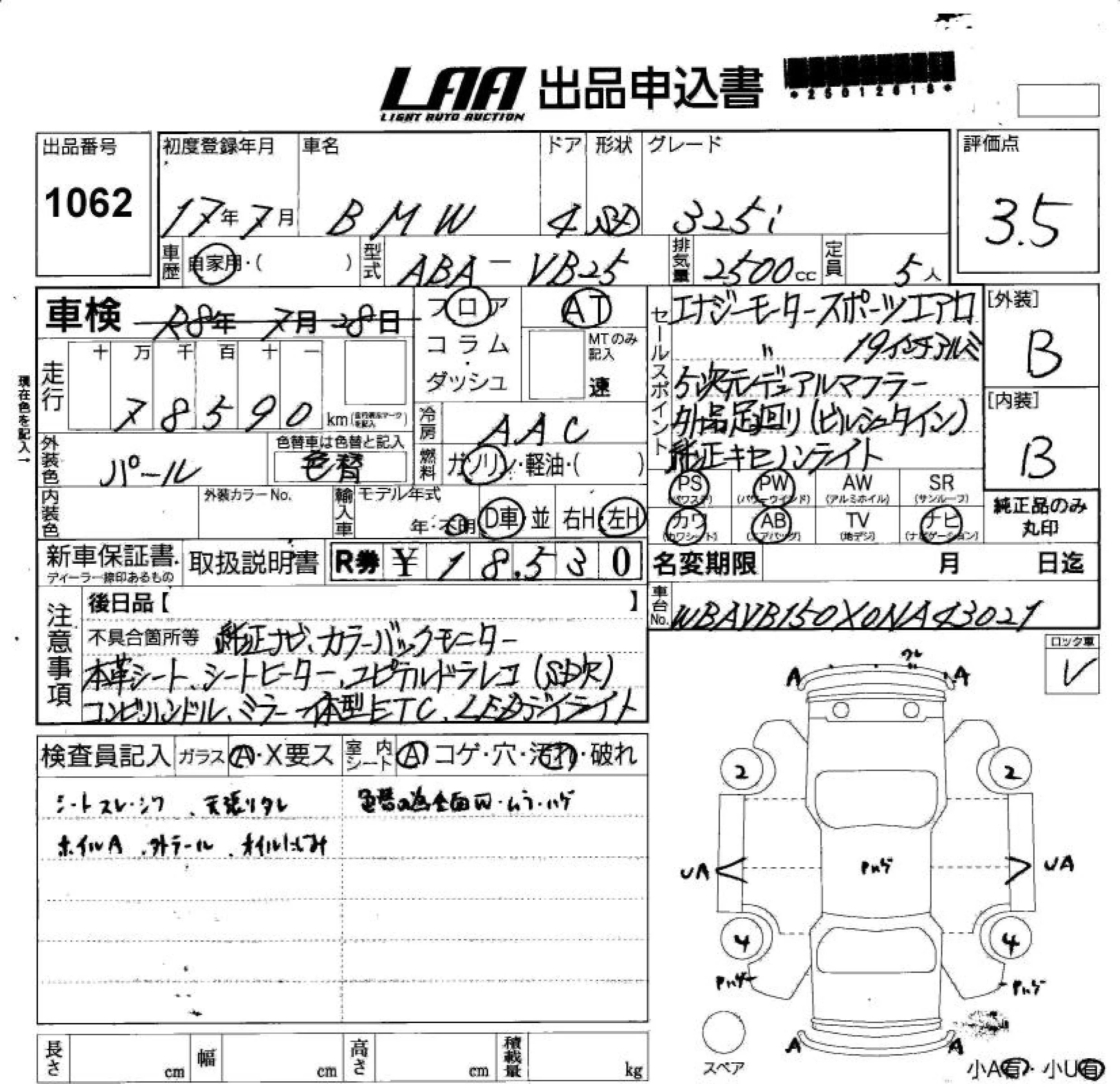 BMW 3-Series с аукциона Японии LAA Shikoku лот № 1062