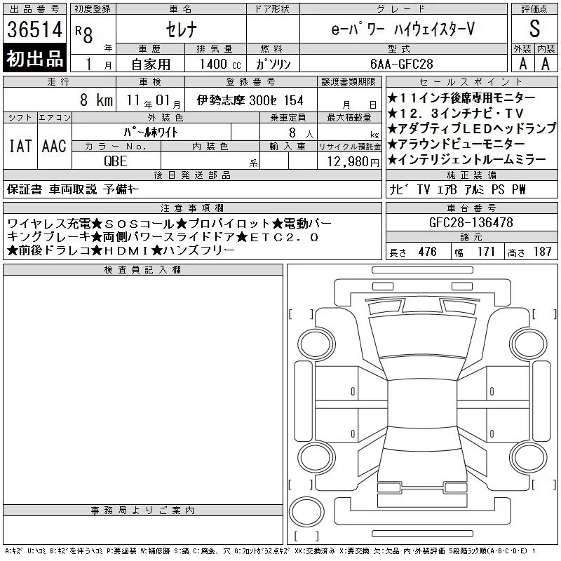 Nissan SERENA с аукциона Японии CAA Chubu лот № 36514