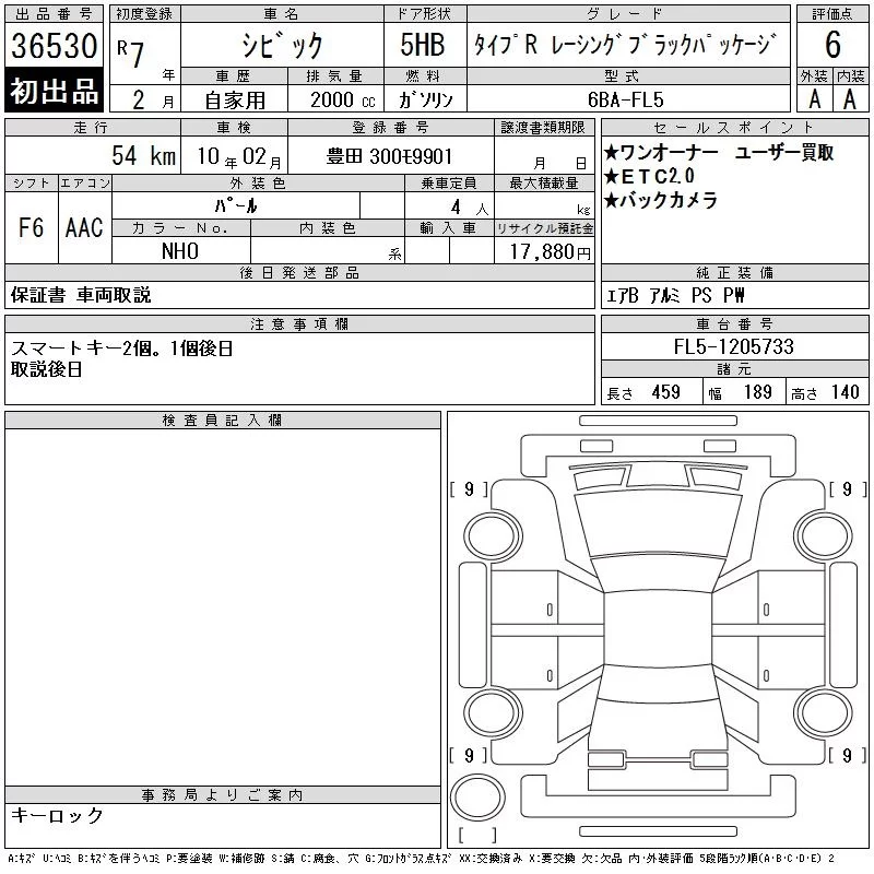 Honda CIVIC с аукциона Японии CAA Chubu лот № 36530