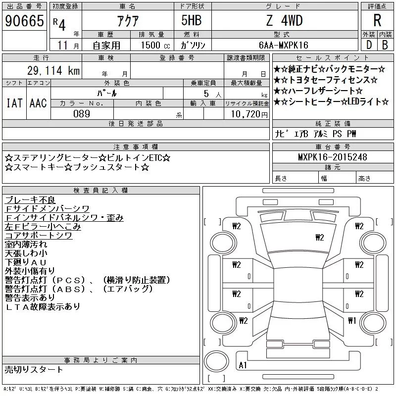 Toyota AQUA с аукциона Японии CAA Chubu лот № 90665