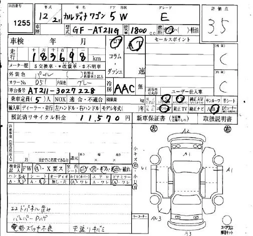 Toyota CALDINA с аукциона Японии IAA Osaka лот № 1255