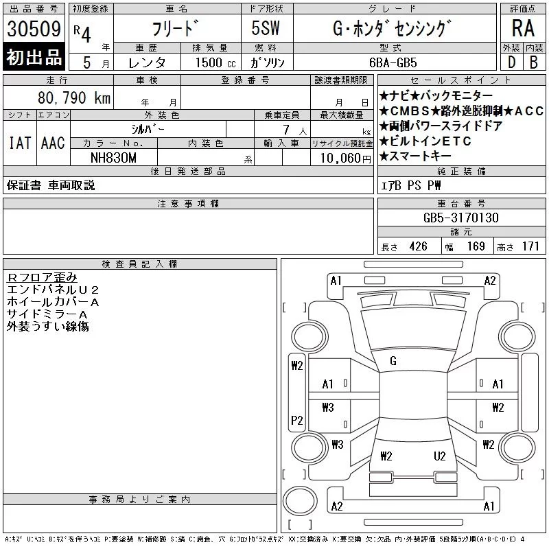 Honda FREED с аукциона Японии CAA Chubu лот № 30509