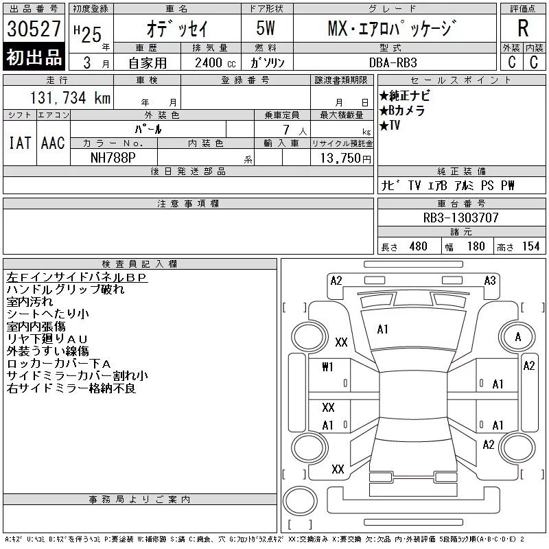 Honda ODYSSEY с аукциона Японии CAA Chubu лот № 30527