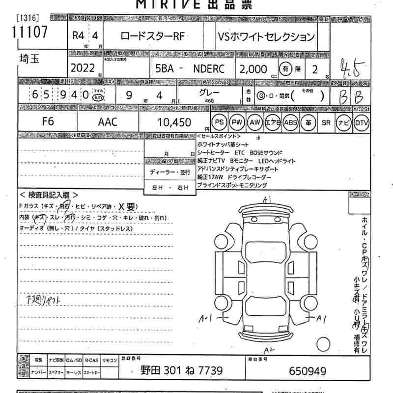 Mazda ROADSTER с аукциона Японии MIRIVE Saitama лот № 11107