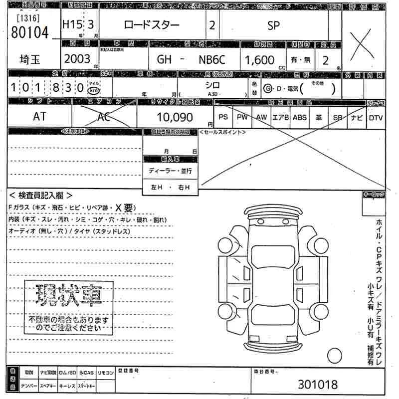 Mazda ROADSTER с аукциона Японии MIRIVE Saitama лот № 80104