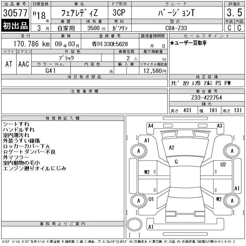 Nissan FAIRLADYZ с аукциона Японии CAA Chubu лот № 30577