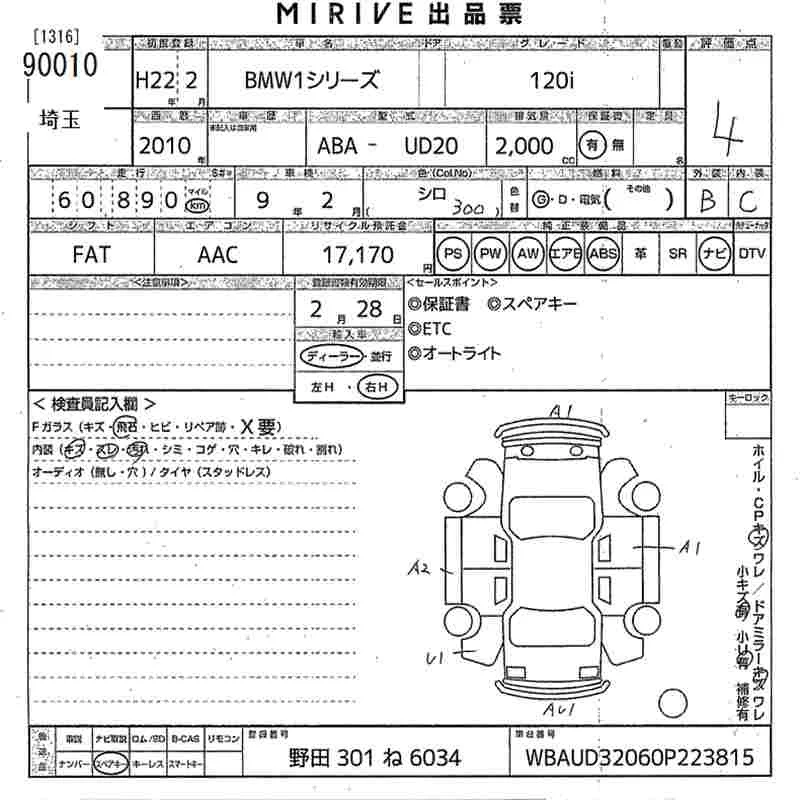 BMW 1-Series с аукциона Японии MIRIVE Saitama лот № 90010