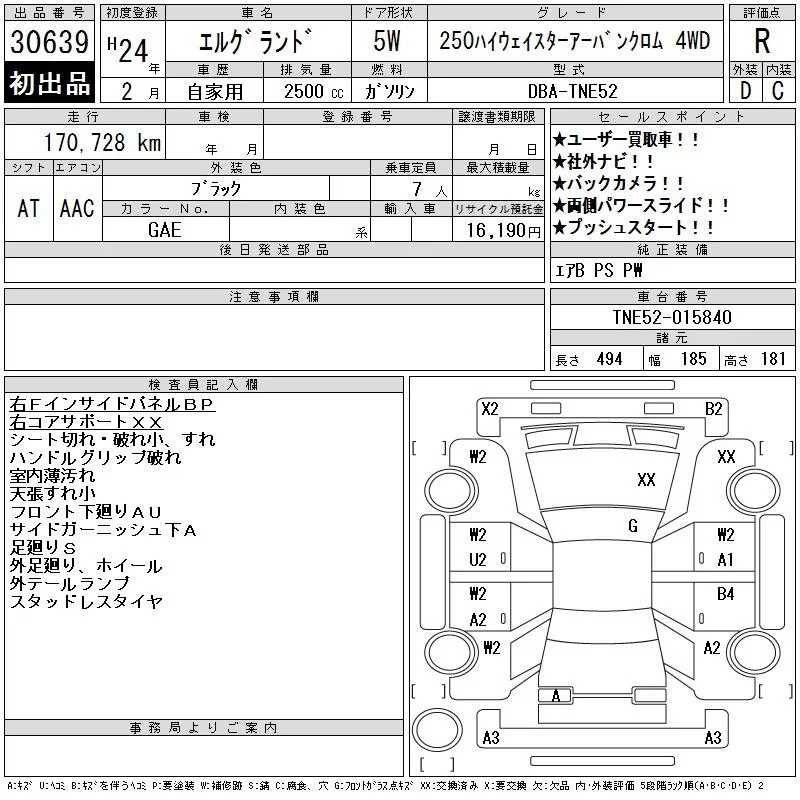 Nissan ELGRAND с аукциона Японии CAA Chubu лот № 30639