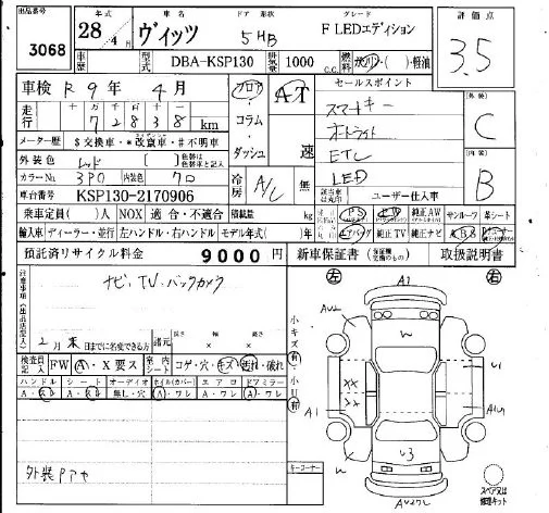 Toyota VITZ с аукциона Японии IAA Osaka лот № 3068