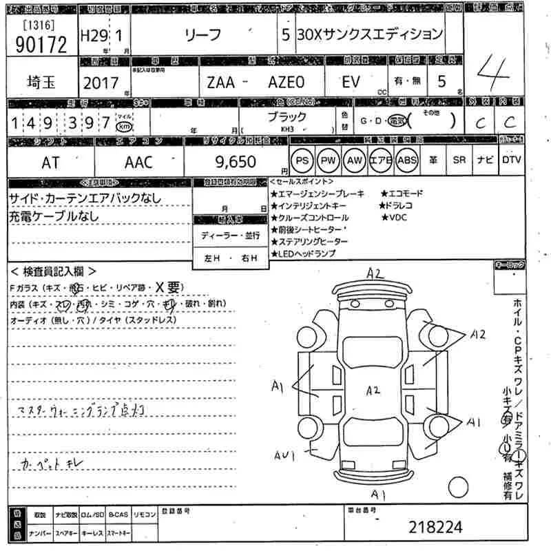 Nissan LEAF с аукциона Японии MIRIVE Saitama лот № 90172