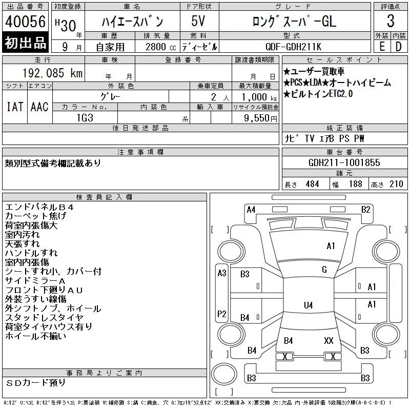 Toyota HIACE VAN с аукциона Японии CAA Chubu лот № 40056