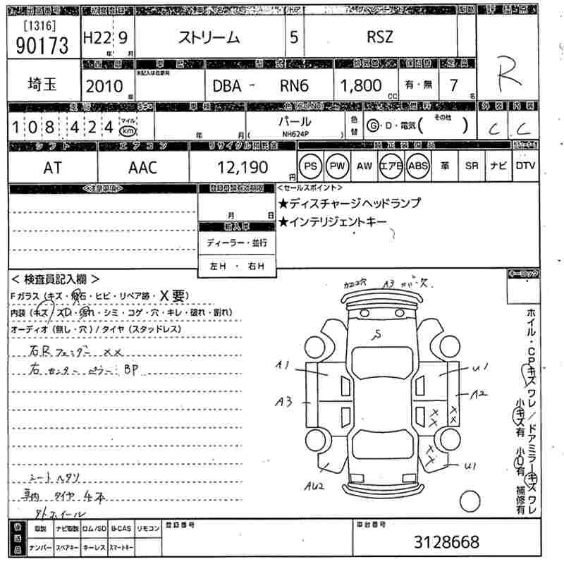 Honda STREAM с аукциона Японии MIRIVE Saitama лот № 90173