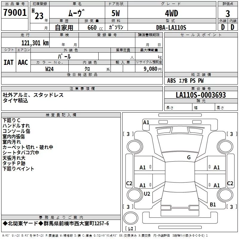 Daihatsu MOVE с аукциона Японии TAA Kanto лот № 79001