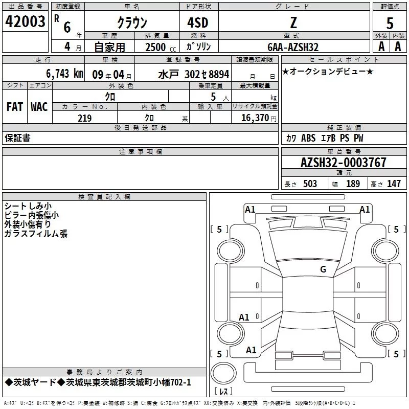 Toyota CROWN с аукциона Японии TAA Kanto лот № 42003