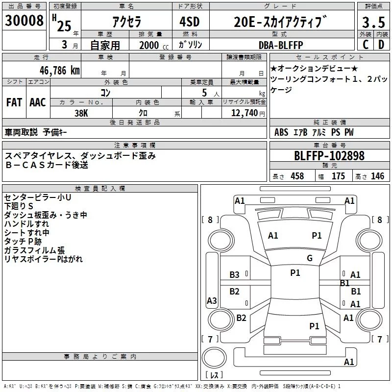 Mazda AXELA с аукциона Японии TAA Kanto лот № 30008