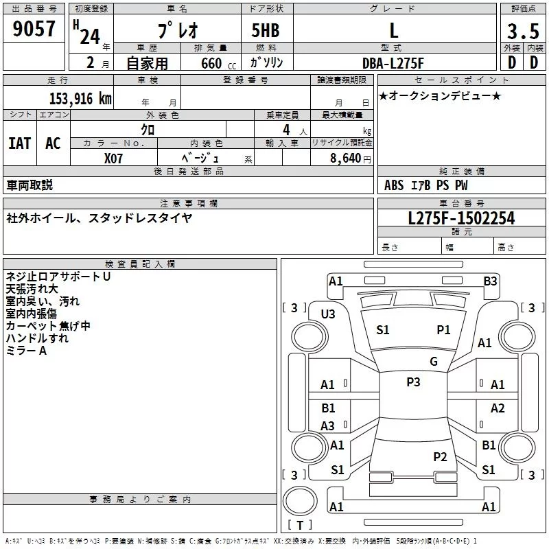 Subaru PLEO с аукциона Японии TAA Kanto лот № 9057