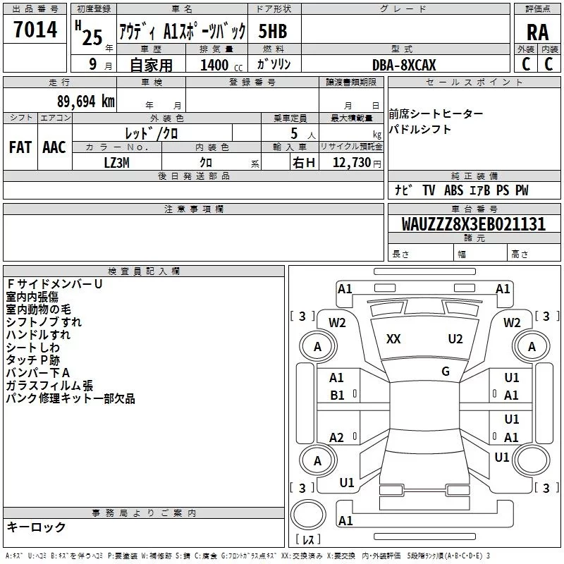 Audi A1 с аукциона Японии TAA Kanto лот № 7014
