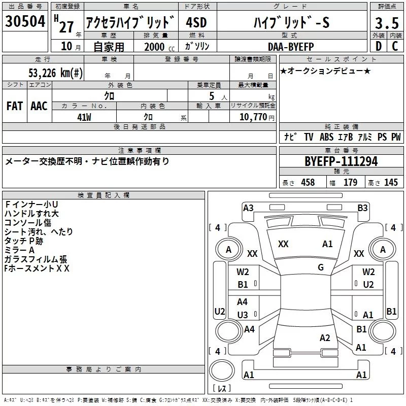 Mazda AXELA с аукциона Японии TAA Chubu лот № 30504