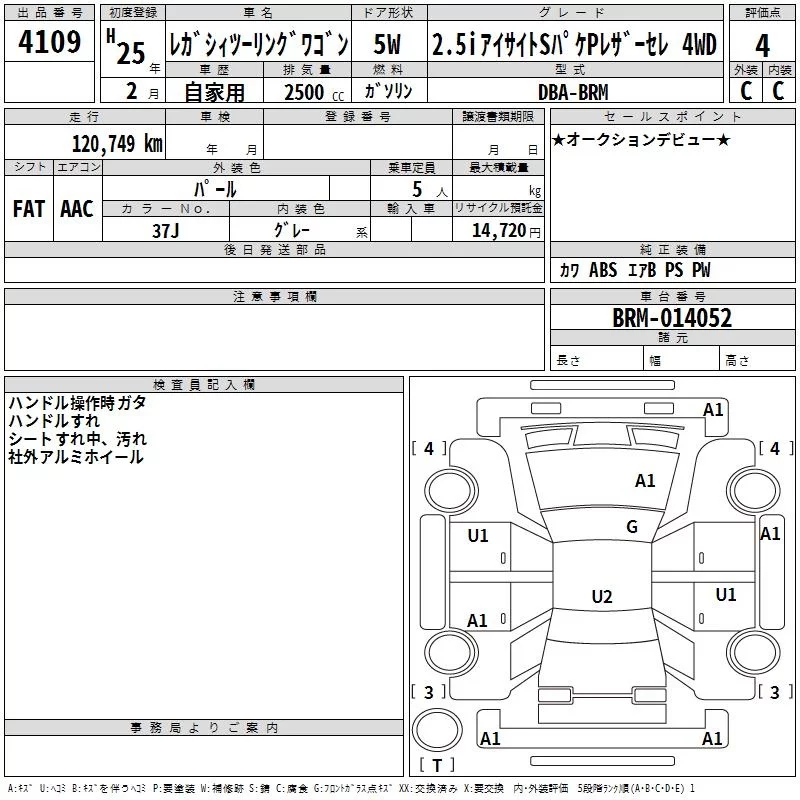 Subaru LEGACY с аукциона Японии TAA Chubu лот № 4109