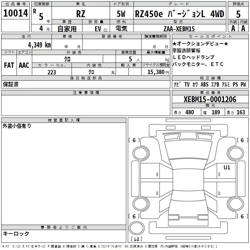 Lexus RZ с аукциона Японии TAA Chubu лот № 10014