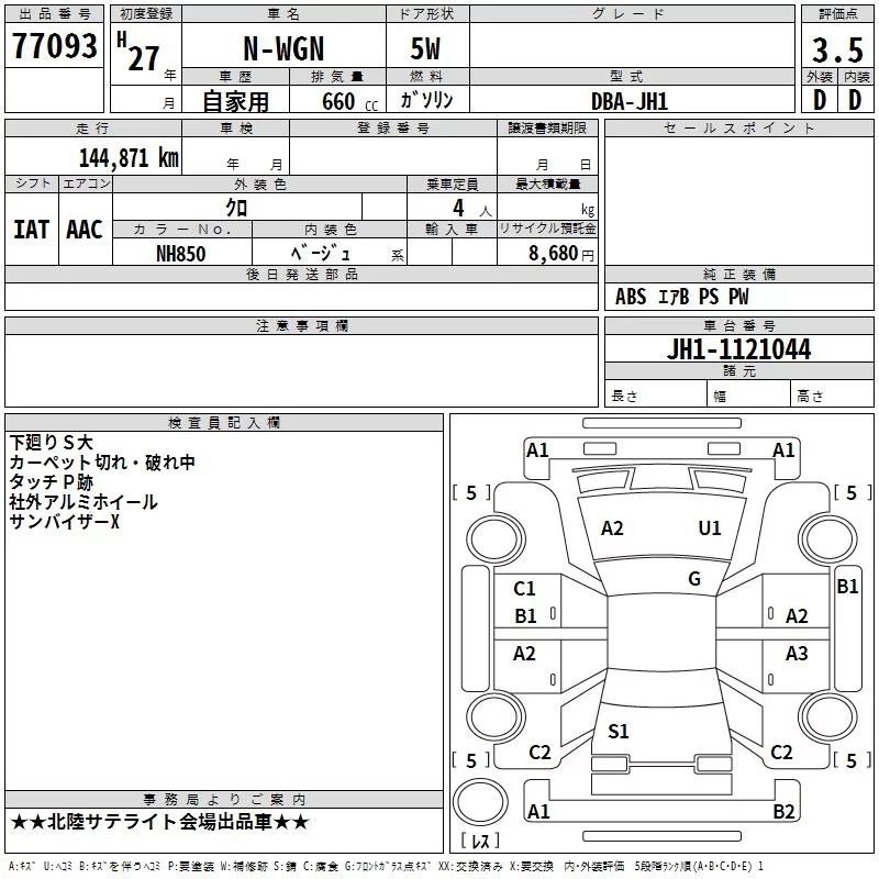 Honda N WGN с аукциона Японии TAA Chubu лот № 77093
