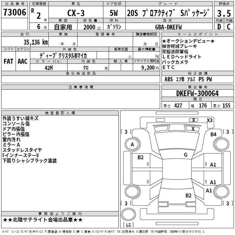Mazda CX-3 с аукциона Японии TAA Chubu лот № 73006