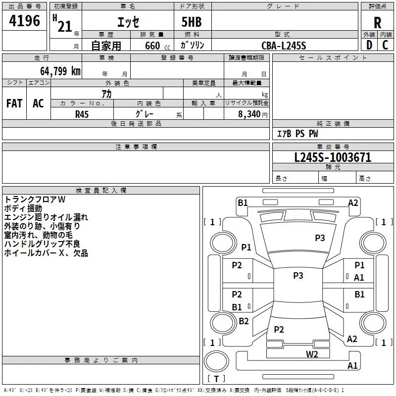 Daihatsu Esse с аукциона Японии TAA Chubu лот № 4196