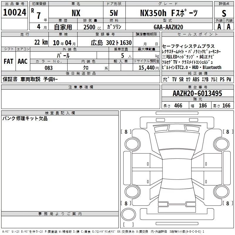 Lexus NX с аукциона Японии TAA Chubu лот № 10024