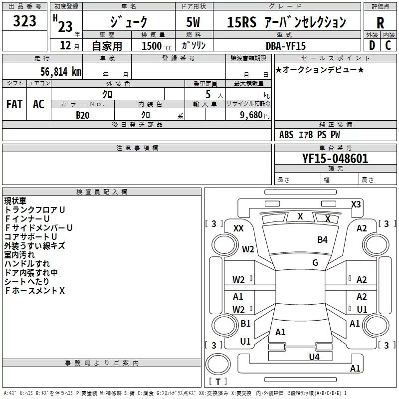 Nissan JUKE с аукциона Японии TAA Chubu лот № 323