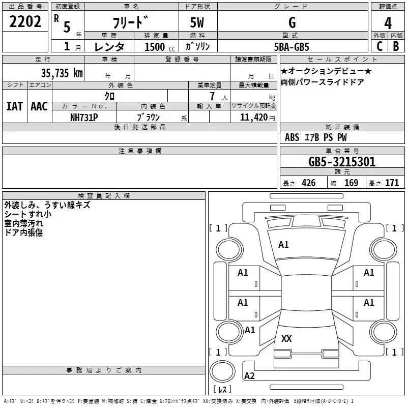 Honda FREED с аукциона Японии TAA Chubu лот № 2202