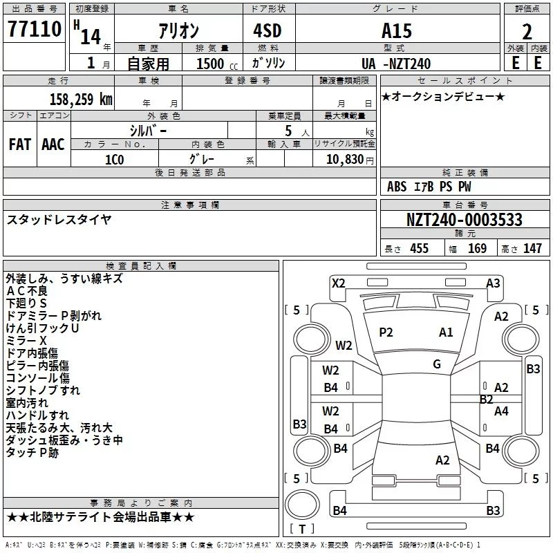 Toyota ALLION с аукциона Японии TAA Chubu лот № 77110