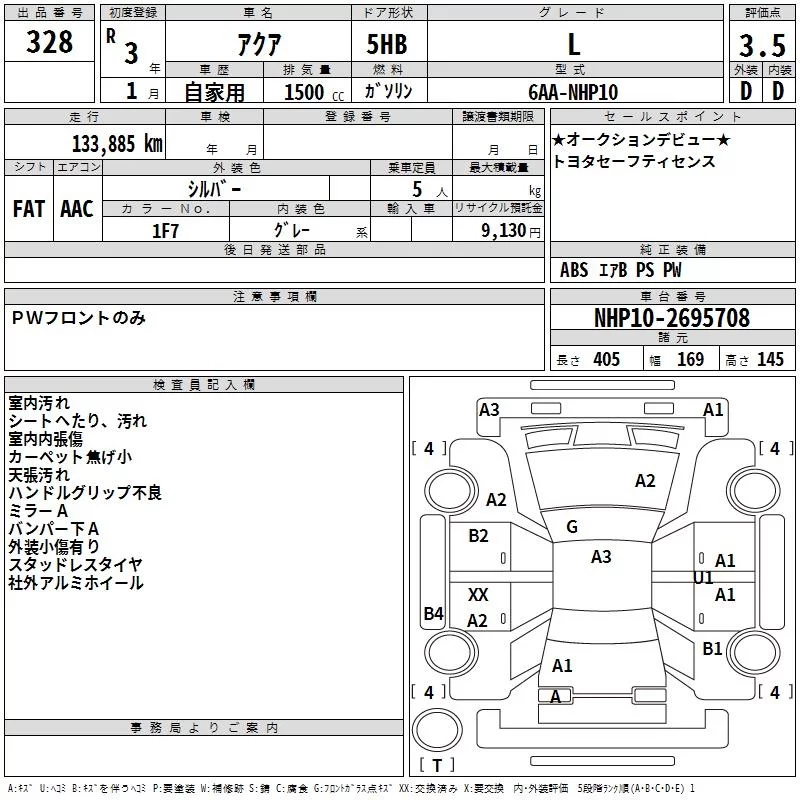 Toyota AQUA с аукциона Японии TAA Chubu лот № 328