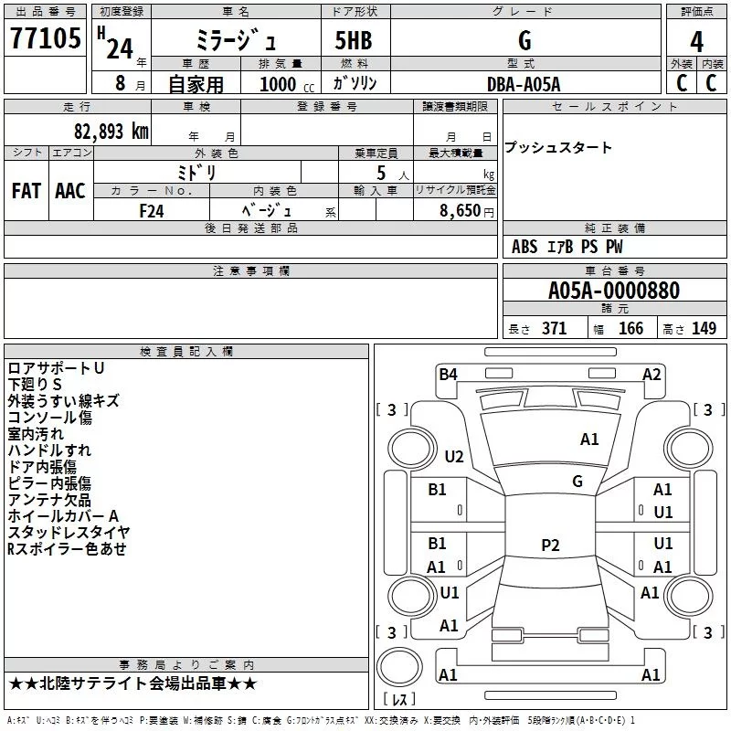 Mitsubishi MIRAGE с аукциона Японии TAA Chubu лот № 77105