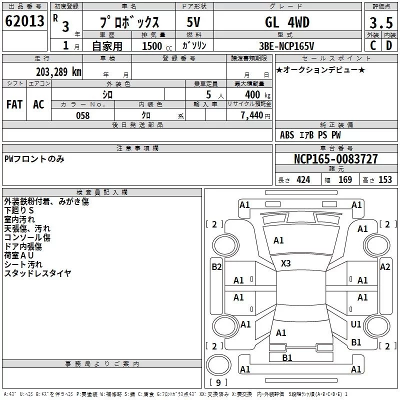 Toyota PROBOX с аукциона Японии TAA Tohoku лот № 62013