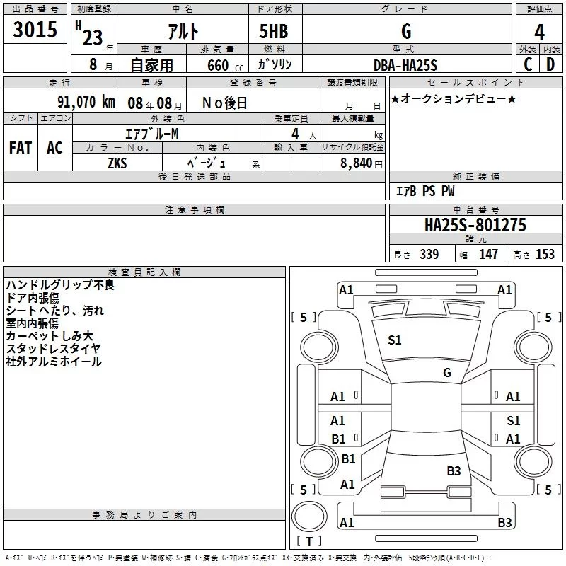 Suzuki ALTO с аукциона Японии TAA Tohoku лот № 3015