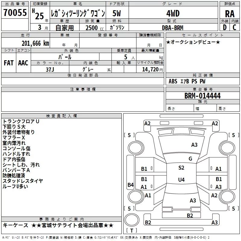 Subaru LEGACY с аукциона Японии TAA Tohoku лот № 70055