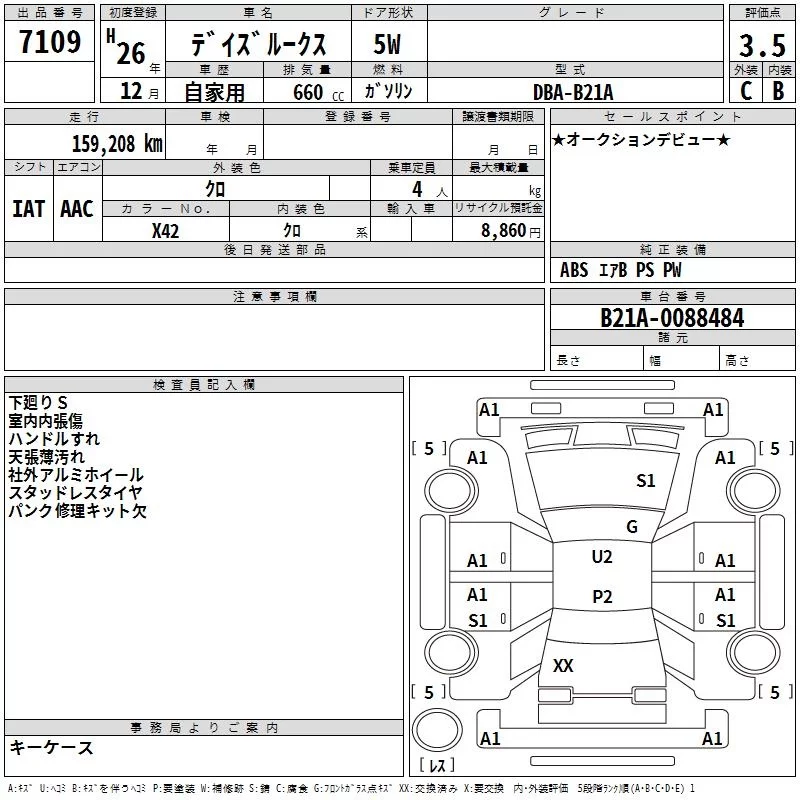 Nissan DAYZ ROOX с аукциона Японии TAA Tohoku лот № 7109