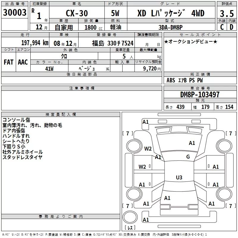 Mazda CX-30 с аукциона Японии TAA Tohoku лот № 30003