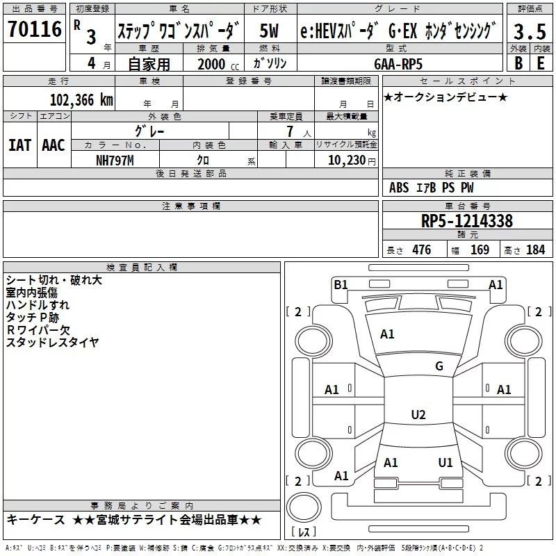 Honda STEP WAGON с аукциона Японии TAA Tohoku лот № 70116