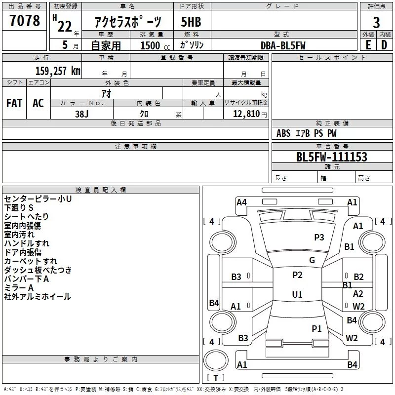 Mazda AXELA с аукциона Японии TAA Tohoku лот № 7078