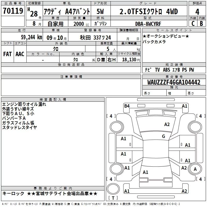 Audi A4 с аукциона Японии TAA Tohoku лот № 70119