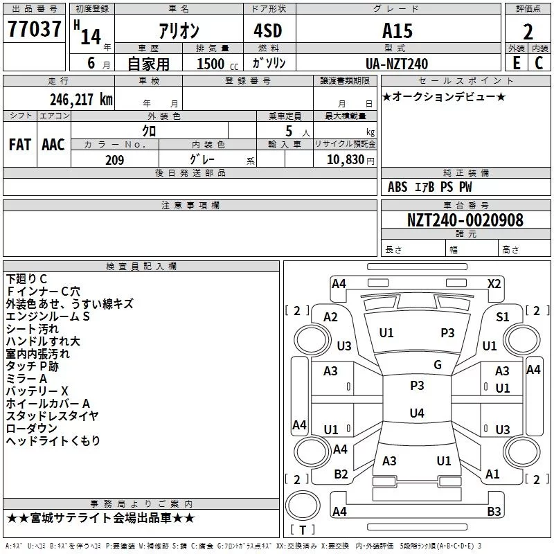 Toyota ALLION с аукциона Японии TAA Tohoku лот № 77037