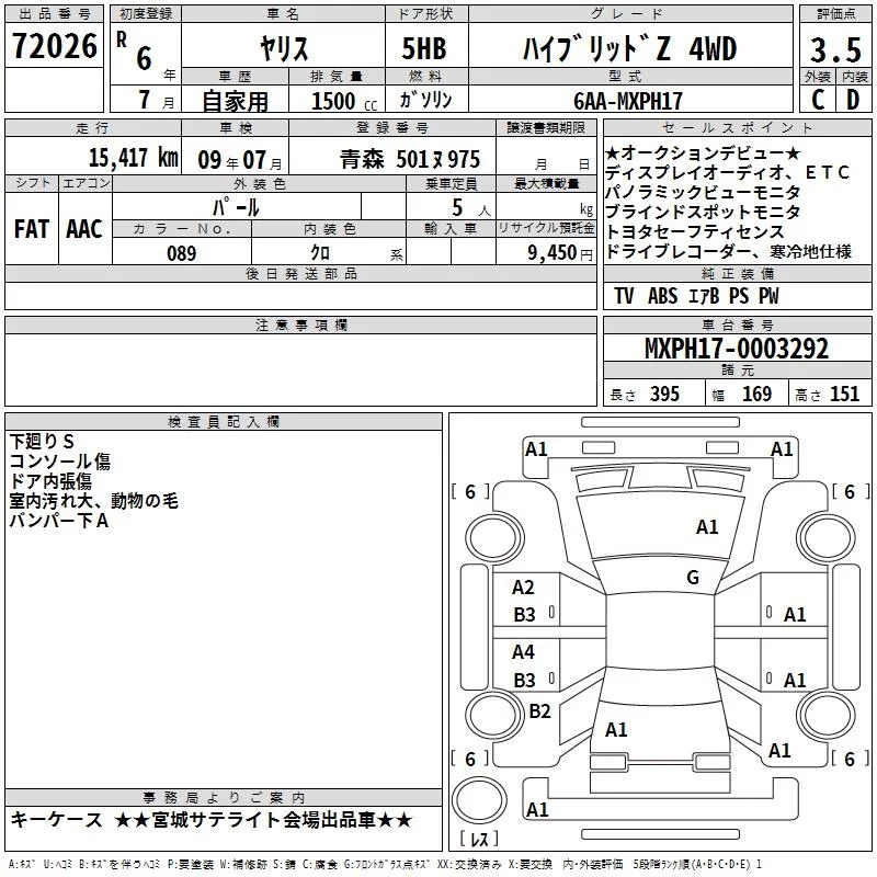 Toyota YARIS с аукциона Японии TAA Tohoku лот № 72026