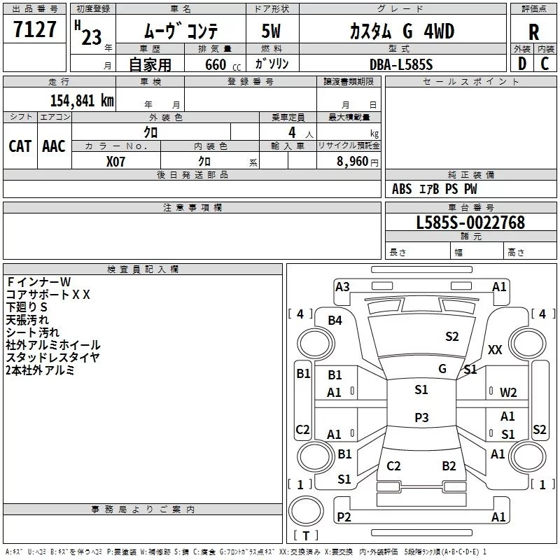 Daihatsu MOVE CONTE с аукциона Японии TAA Tohoku лот № 7127